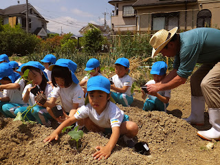 岩本先生と子ども達は、どんな野菜を植えるのかな~とワクワク