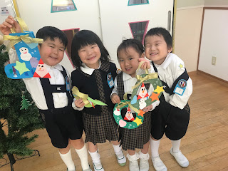 「いい子にしてたらプレゼントもらえる(^^)」「早くサンタさん来てほしい♥」と何のプレゼントをお願いするかワクワクしながら作っていた子どもたちです。