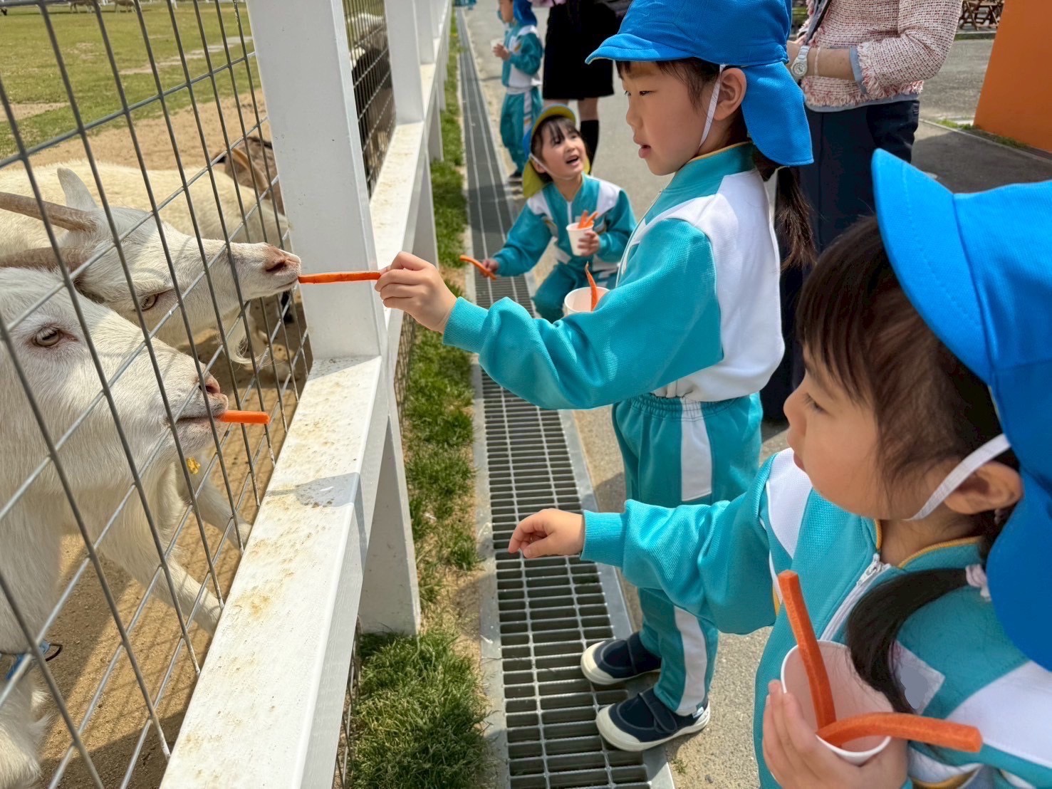 動物を触ることが少し怖いお友達も先生やお友達と手を繋いで恐るおそる触れると「触れた!」と嬉しそうにお話ししてくれ、慣れてくると進んで動物との触れ合いを楽しんでいました!